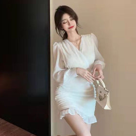 Prominente persönliche Kleidung, Einteiler, Minirock, V-Ausschnitt. Enthält Patchwork-Elemente. Essentieller & verführerischer Stil. Ärmellos. Patchwork/Kombination.