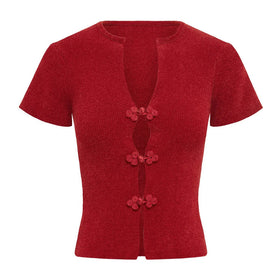 Fudus V-Neck Cropped Top with Vintage Buckle Detail