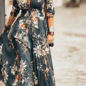 Märchenstil Kleid mit dekorativem Druck. Dreiviertelärmel. Alltagsmode. Druck/Färbetechnik.