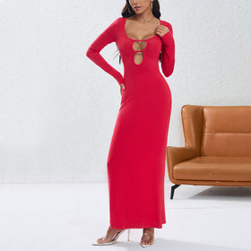 Fudus verführerisches langes Partykleid mit Ausschnitt