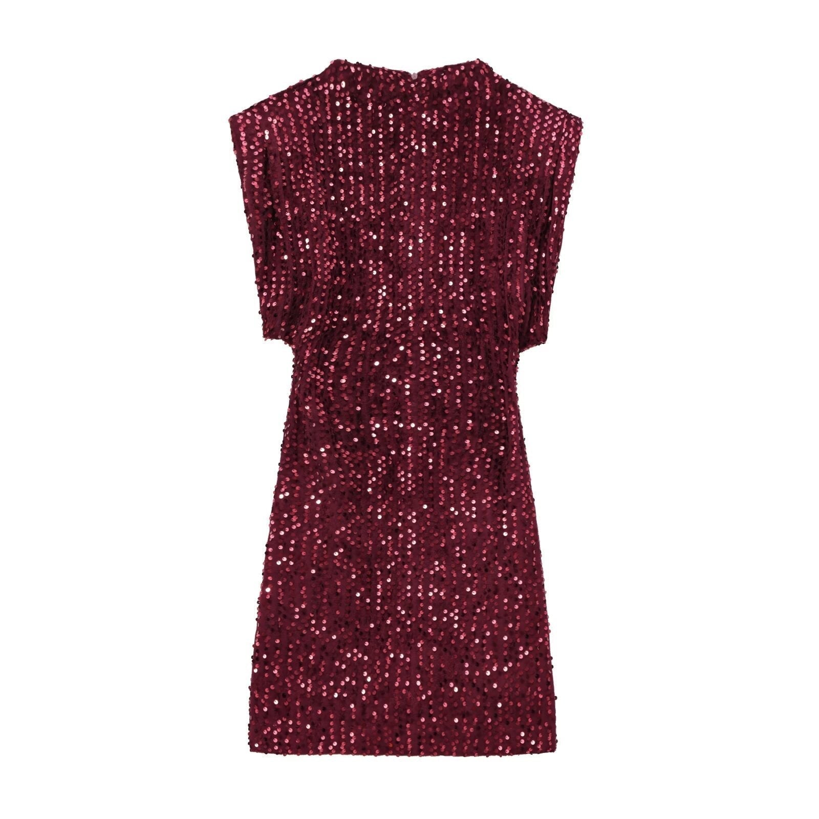 Kleid, Einteiler. Material: Einzelstück. Minirock Länge. Runder Ausschnitt. Glitzernde Details. Ärmelloser Pullover. Pullover-Verschluss. Collage/Patchwork Technik.