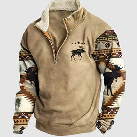 Fudus Vintage-Fleece-Pullover mit Reißverschluss