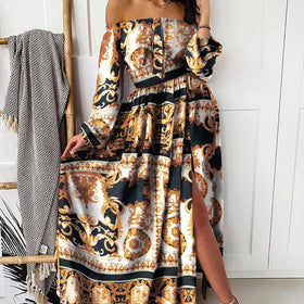 Fudus Vintage Langarm-Kleid mit großem Saumschlitz