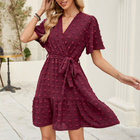 Fudus Wickelkleid mit Pomponärmeln und Rüsche