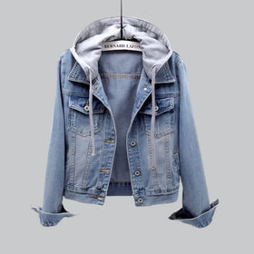 Fudus Women's Down-Filled Hooded Denim Jacket
