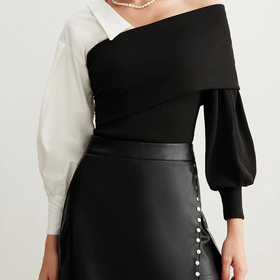 Fudus Zweifarbiges Cold-Shoulder-Shirt