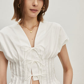 Gefaltete und geknotete Baumwollbluse...