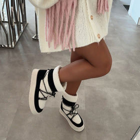 Gefütterte Teddy-Schneeboots in Weiß und Schwarz
