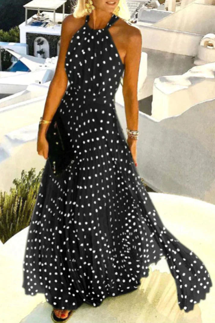 Die Georgia Bohème Print Patchwork Halter Plisseekleider vereinen charmanten Boho-Stil mit Eleganz. Perfekt für einen verspielten, raffinierten Look.
