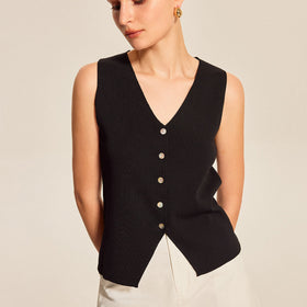 Geripptes Strick-Top mit Knöpfen und ohne Ärmel von Fudus