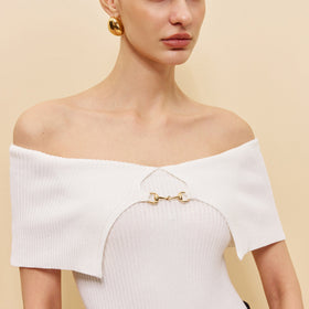 Geripptes Stricktop mit Kettendetail und off-shoulder Ausschnitt von Fudus