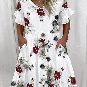 Dieses Kleid mit gerüschtem Saum ist feminin und elegant. Der fließende Stoff schmeichelt der Figur. Der gerüschte Saum ist ein echter Hingucker. - Ideal für besondere Anlässe. - Perfekt mit hohen Schuhen und Clutch.