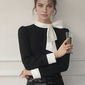 Gestricktes Oberteil mit Farbblock-Schleife von Fudus