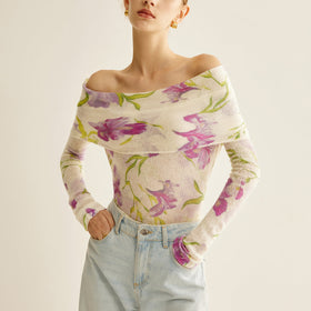 Gestricktes Schulterfreies Top von Fudus mit romantischem Print