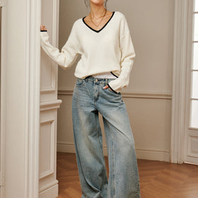 Gestricktes Top mit besticktem Besatz und drapierter Schulter von Fudus