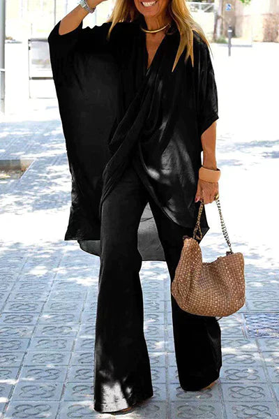Ginevra Zweiteiliges Set: Asymmetrischer V-Ausschnitt, halbe Ärmel