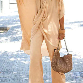 Das Ginevra Zweiteilige Set mit asymmetrischem V-Ausschnitt und Halbärmeln vereint Stil und Komfort. Modernes Design und hochwertige Verarbeitung für formelle Anlässe oder entspannte Treffen.