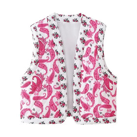 Dieser ärmellose Mantel mit charmantem Paisley-Blumenmuster ist ein zeitloser Look, perfekt für Frauen mittleren Alters.