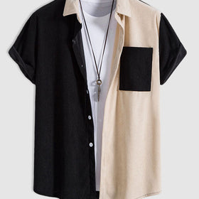 Dieses Herren Patchwork Kord Kurzarmhemd vereint mühelos verschiedene Texturen und Farben zu einem auffälligen Hingucker für legere Anlässe. Der weiche Kordstoff bietet angenehmen Tragekomfort bei warmem Wetter.