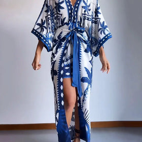 Stilvolles Maxikleid für alle Anlässe. Leicht, luftig, auffälliger Druck. Elegantes Design, ideal für warme Tage. - Lässiger Look mit Sandalen, elegant mit hohen Absätzen. Ein vielseitiges Kleidungsstück.