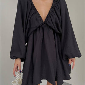 Hayley Kleid mit V-Ausschnitt und Laternenärmeln