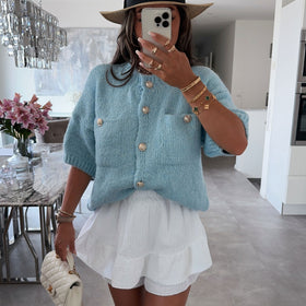 Die Strickjacke Marissa in Hellblau ist perfekt für stilbewusste Frauen. Weich, gemütlich und modern, ideal für jede Jahreszeit. Die feine Strickqualität sorgt für angenehmen Tragekomfort, die elegante Farbe verleiht jedem Outfit einen frischen Stil. Vielseitig einsetzbar – Büro oder Zuhause.