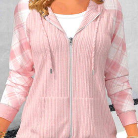 Hellrosa Damen Kapuzenpullover mit Patchwork-Karomuster von Fudus
