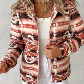 Stell dir vor, wie du an einem frischen Herbsttag in diese wunderschöne Jacke mit Aztekenmuster schlüpfst. Mit ihrem weichen Stoff und dem trendigen Design fühlst du dich nicht nur warm, sondern auch mühelos stilvoll, bereit, alles zu genießen, was die Saison zu bieten hat.