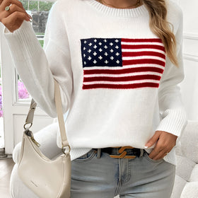 Schlüpfe in diesen gemütlichen Pullover mit auffälligem amerikanischem Flaggen-Design. Er hält dich warm und zeigt deinen Stolz. Weicher Stoff für höchsten Komfort.