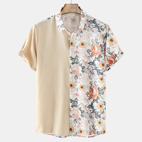 Herren Kurzarmhemd mit halbem floralen Druck