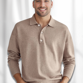Herren-Poloshirt von Matteo Polo: Langarm, Merino-Optik, lässiger Stil