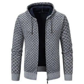 Wärmt an kalten Tagen: Diese Strickjacke mit klassischem Karomuster und weichem Fleecefutter bietet Komfort und Stil. Stehkragen und Kapuze schützen vor Wind und Wetter. Ein modisches und funktionales Must-Have für Herren.