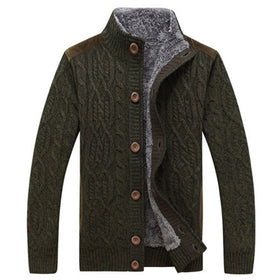 Herren-Zopfstrickjacke mit weichem Plüschfutter