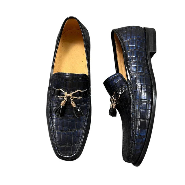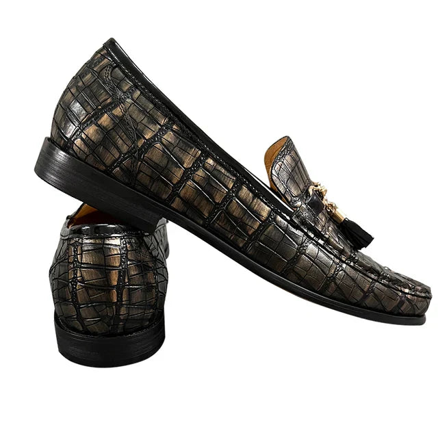 Treten Sie in Stil und Komfort mit unseren handpolierten Herren Slippern von EchtStil ein! Diese klassischen Schuhe aus echtem Leder mit stilvollem Krokodil-Druckmuster unterstreichen Ihre Eleganz. Luxus und Bequemlichkeit vereint für jeden Anlass.