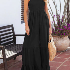 Dieser einfarbige Jumpsuit ist perfekt für den Sommer. Er hat einen quadratischen Halsausschnitt, ist ärmellos und hat weite Hosenbeine, die zu verschiedenen Beinformen passen.