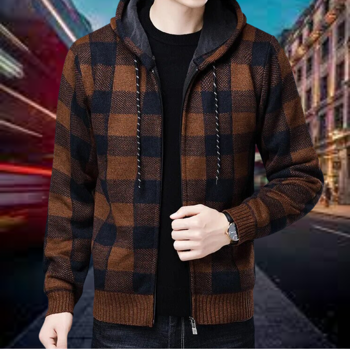 Deshalb gehört die Hyvaelis | Hochwertige Strickjacke mit karierter Kapuze in Ihren Kleiderschrank: