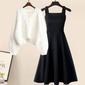Hochwertiges Jacky-Set: Kreuzstrickpullover & elegantes Kleid (2-teilig)
