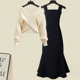 Hochwertiges Macey Set: Kreuzstrickpullover & Fischschwanzkleid (2-teilig)