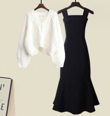 Hochwertiges Stacey Set: Kreuzstrickpullover & Fischschwanzkleid (2-teilig)