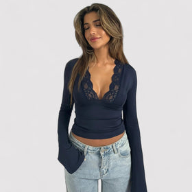 Hochwertiges, tief gestricktes Damen-Cropped Top von Fudus