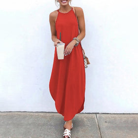 Der geschmackvolle Seitenschlitz ermöglicht anmutige Bewegungen und verleiht jedem Schritt einen Hauch von Verführung. Das ärmellose Design hält Sie kühl und betont Schultern und Arme – ideal für sonnige Events oder romantische Abende.
