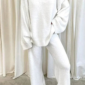 Dieser bequeme Polyester-Zweiteiler bietet V-Ausschnitt, reguläre Ärmel und einen Kordelzug.