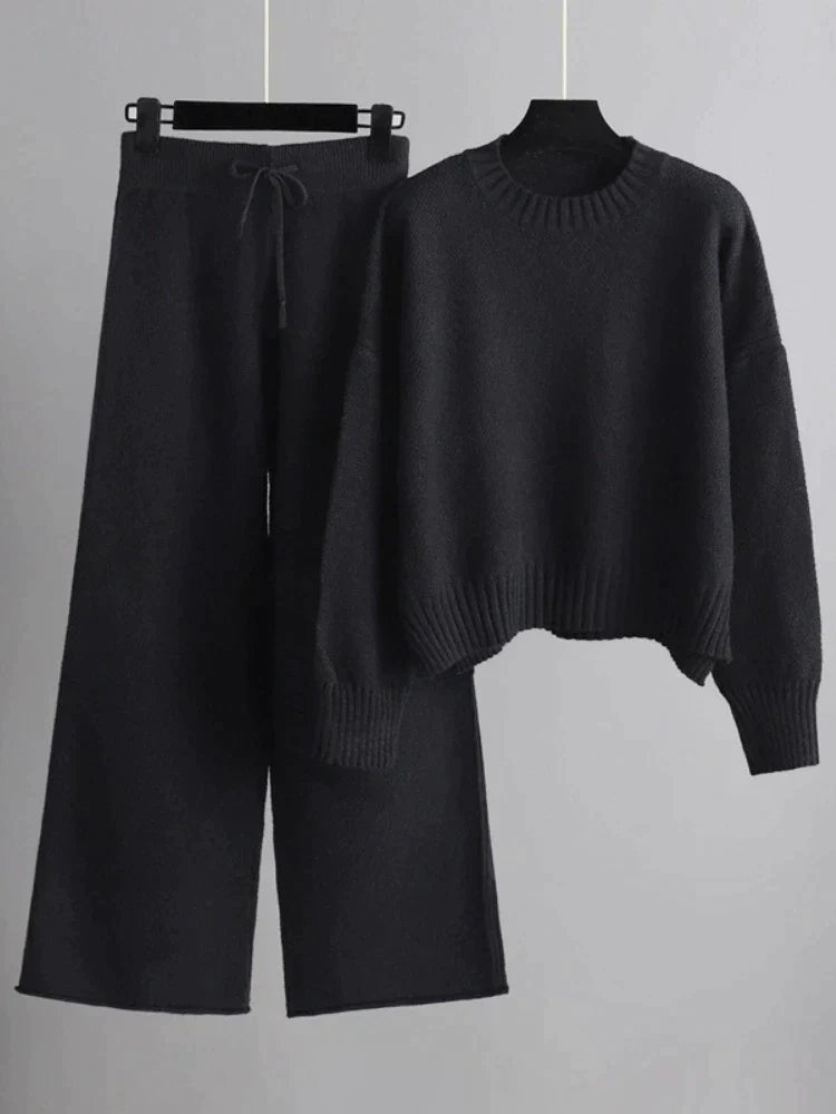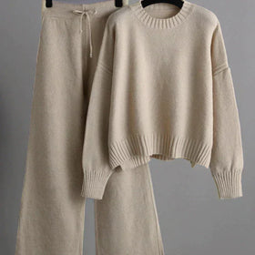 Das Joanna Strick-Duo ist die perfekte Kombination aus Stil und Komfort. Der kuschelige Pullover und die lässig geschnittene Hose sorgen für ein entspanntes und dennoch schickes Outfit. Ideal für gemütliche Stunden zu Hause oder entspannte Ausflüge.