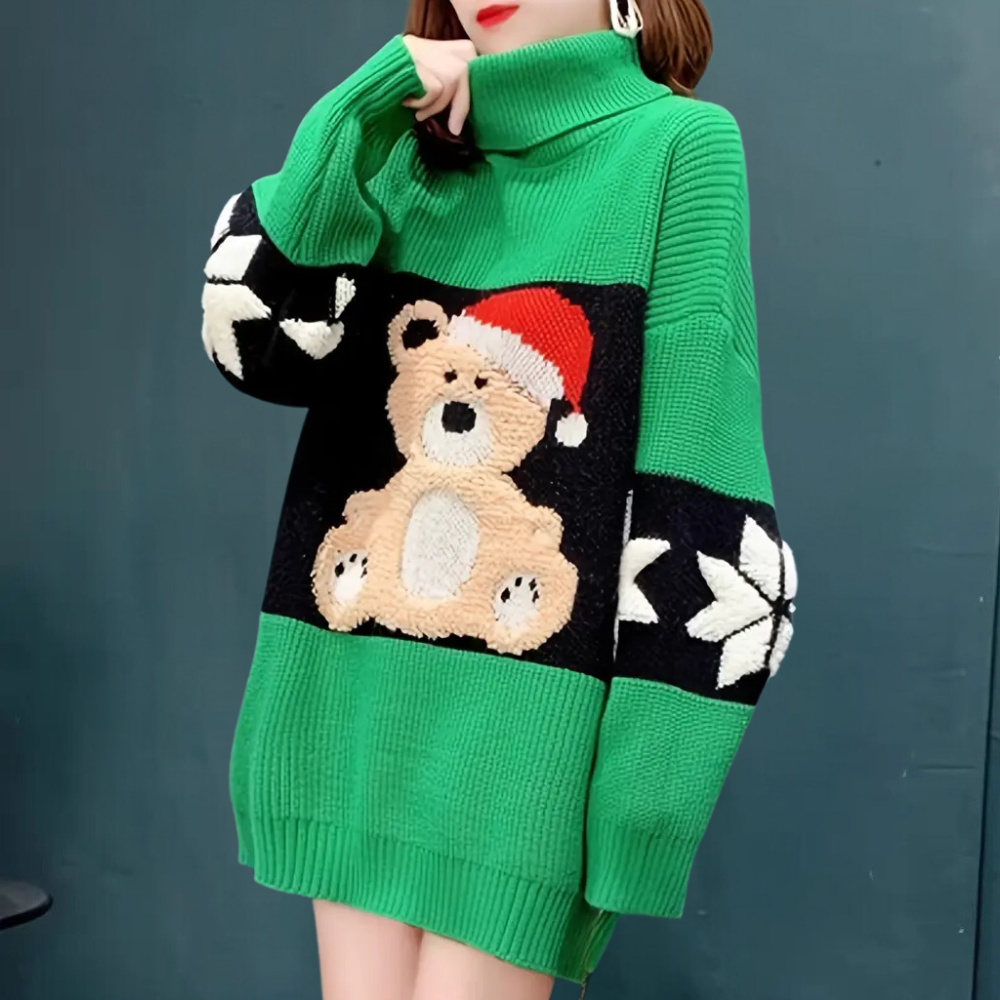 Der JOSEPHINE - Trendy Christmas Sweater für Damen ist perfekt für stilvolle Feiertage. Lockerer Schnitt, klassischer Rollkragen, festliches Muster und leuchtende Farben (Grün, Rot) sorgen für Komfort und gute Laune. Material: Acryl.