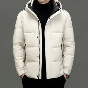 Unsere Jay Jacke, isoliert mit hochwertiger Baumwolle, hält warm und sieht stilvoll aus. Ihre Schlichtheit macht sie einzigartig. Sie hat große Taschen und eine Kapuze, elegant verarbeitet.