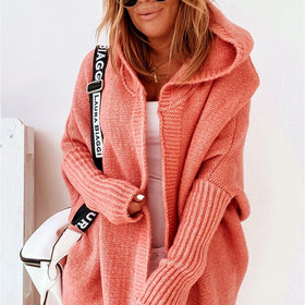 Diese Strickjacke mit Kapuze ist stilvoll und bequem für kühle Tage. Weicher Strickstoff sorgt für Wärme und einen entspannten Look für Alltag, Spaziergänge oder Treffen.