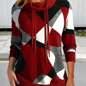 Kapuzenpullover mit hohem Kragen und Kontrast
