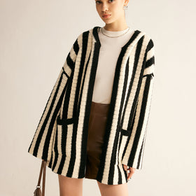 Kapuzenstrickjacke mit Kontraststreifen von Fudus