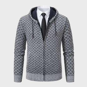 Klassische Argyle-Zipperjacke mit Kapuze für Herren