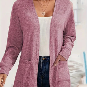 Zeitlose Strickjacke mit offenem Schnitt und praktischem Taschen-Design für maximalen Komfort und lässige Eleganz. Das weiche, hochwertige Material eignet sich ideal für den Alltag, ob casual oder elegant. Ein absolutes Must-have!